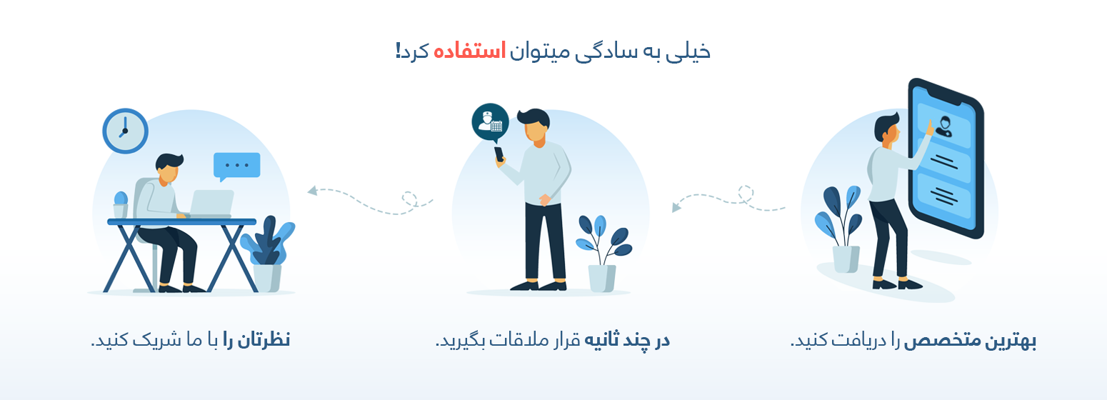 چگونه از داکتر پلس استفاده کنیم؟ (یک صفحه نمایش به عنوان یک راهنمای کاربر برای هر یک از مراحل زیر ارائه شده است).